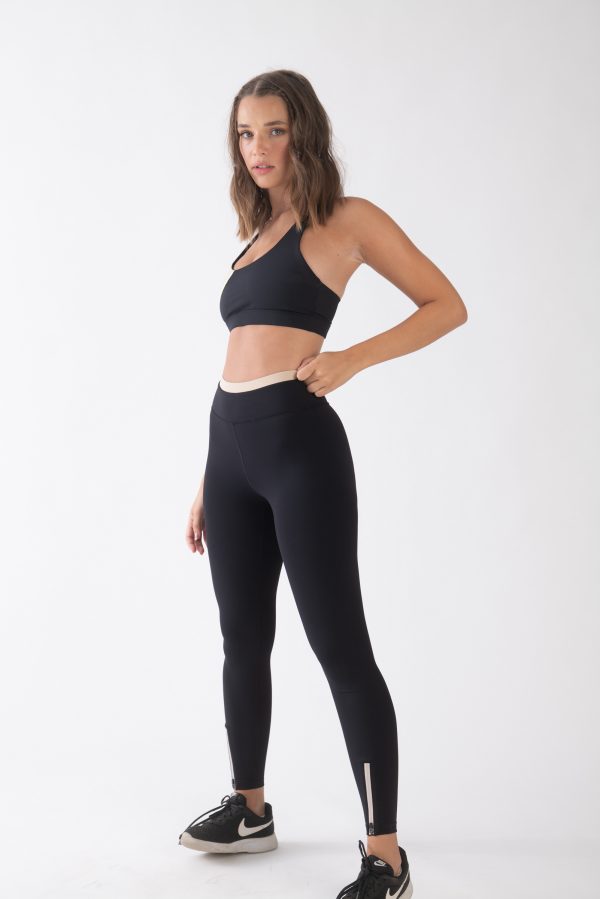 טייץ שחור מחטב גבוה בשילוב חגורה בצבע ביז .דוגמנית לובשת S